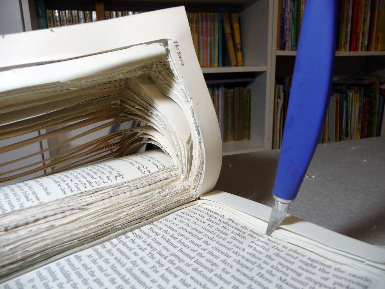 - Cut a circle in the book. Leave a small amount of the last pages.