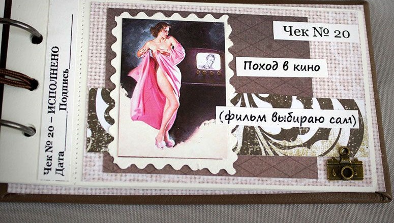 An unusual surprise could be "Notebook desires." In magazines or on the Internet, find pictures with the image of what a man dreams of, It could be a car, a flat, a summer house, or anything. Cut it out and paste it into the “notepad of desires”. The action of the notebook is to believe in the fulfillment of desire. When it is executed, burn this notebook page.