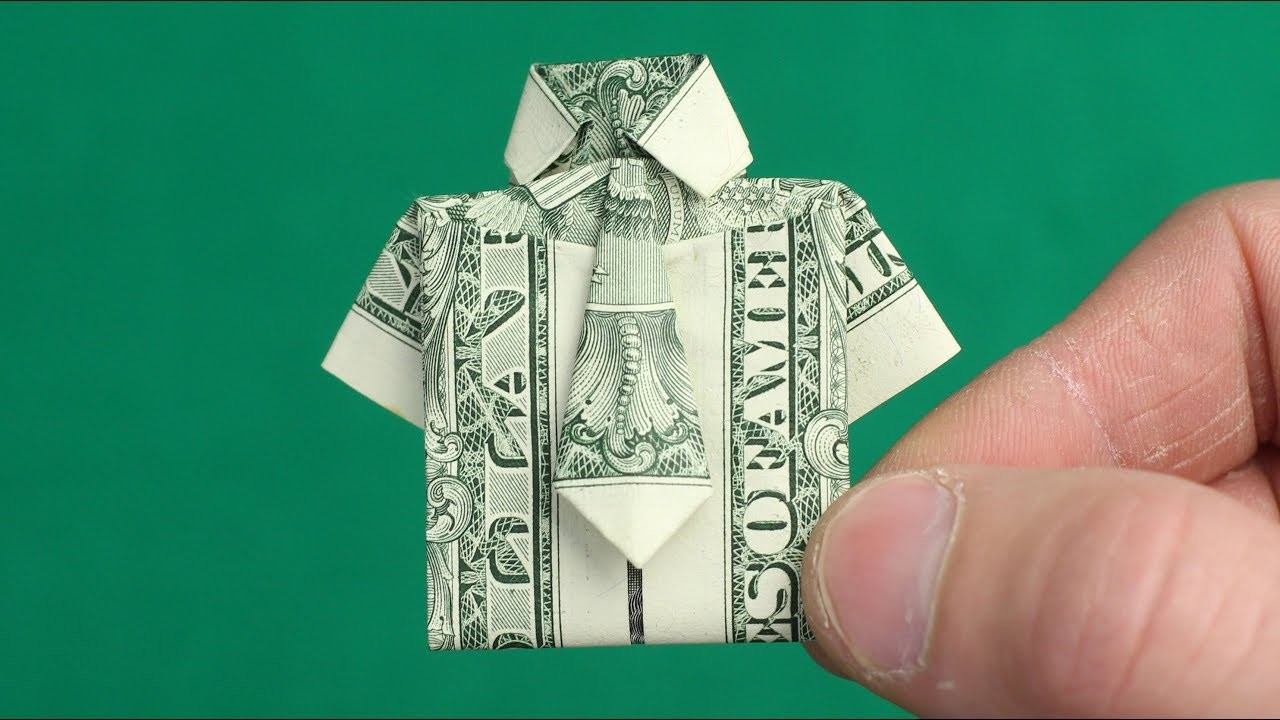 Make an interesting gift from any bills. Create it in the form of a men's shirt and tie.
