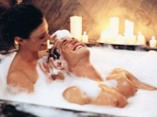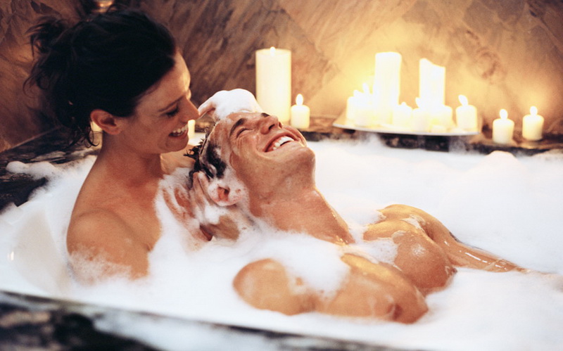 You can surprise your loved one in the form of a joint romantic bathing before bedtime. To do this, before the arrival of your beloved, pre-dial the bath with perfumed snow-white foam. It is also very important to decorate the bathroom with scented candles and rose petals, so that the surroundings are in a romantic mood.