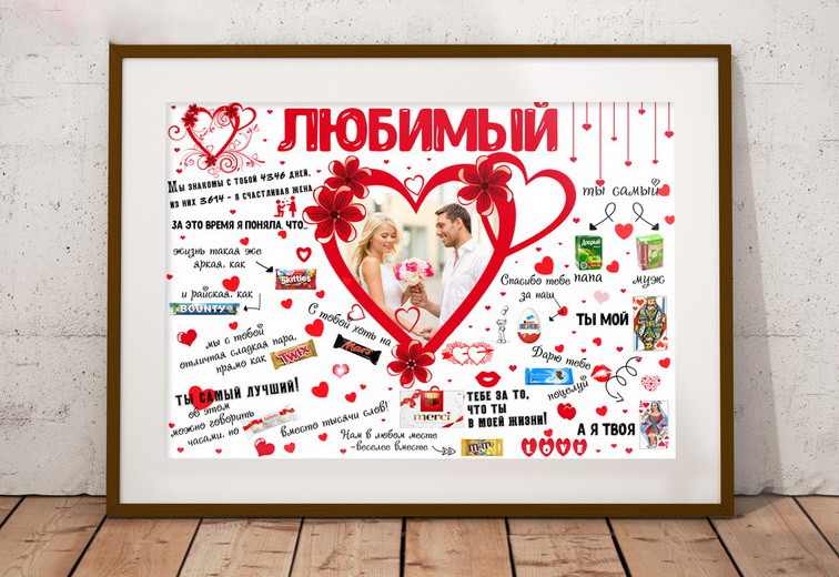 If you need to pick up some kind of budget option for a surprise, you can do your own box with notes. They need to write compliments or good wishes, and your chosen one will be able to read them, alternately pulling out of the box. To make the gift look spectacular, you can beautifully decorate the box using the scrapbooking technique, using photos of your beloved or your photos with him.