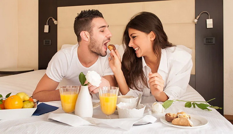 An interesting romantic idea for a loved one will be breakfast in bed. This mini-surprise can be done at home, on any day off, when you don’t need to rush anywhere. To translate ideas into life, it is enough to get a tray or a folding mini-table. As a treat, a small cup of coffee with a chocolate croissant or fresh fruit with freshly squeezed orange juice is possible.