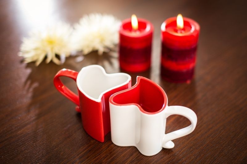 - On Valentine's Day, you can give your favorite set of two cups, called "loving hearts." Such ware has the form in the form of hearts. Beautiful and tender cups will remind your beloved of your warm attitude towards her and the attention you pay to her.