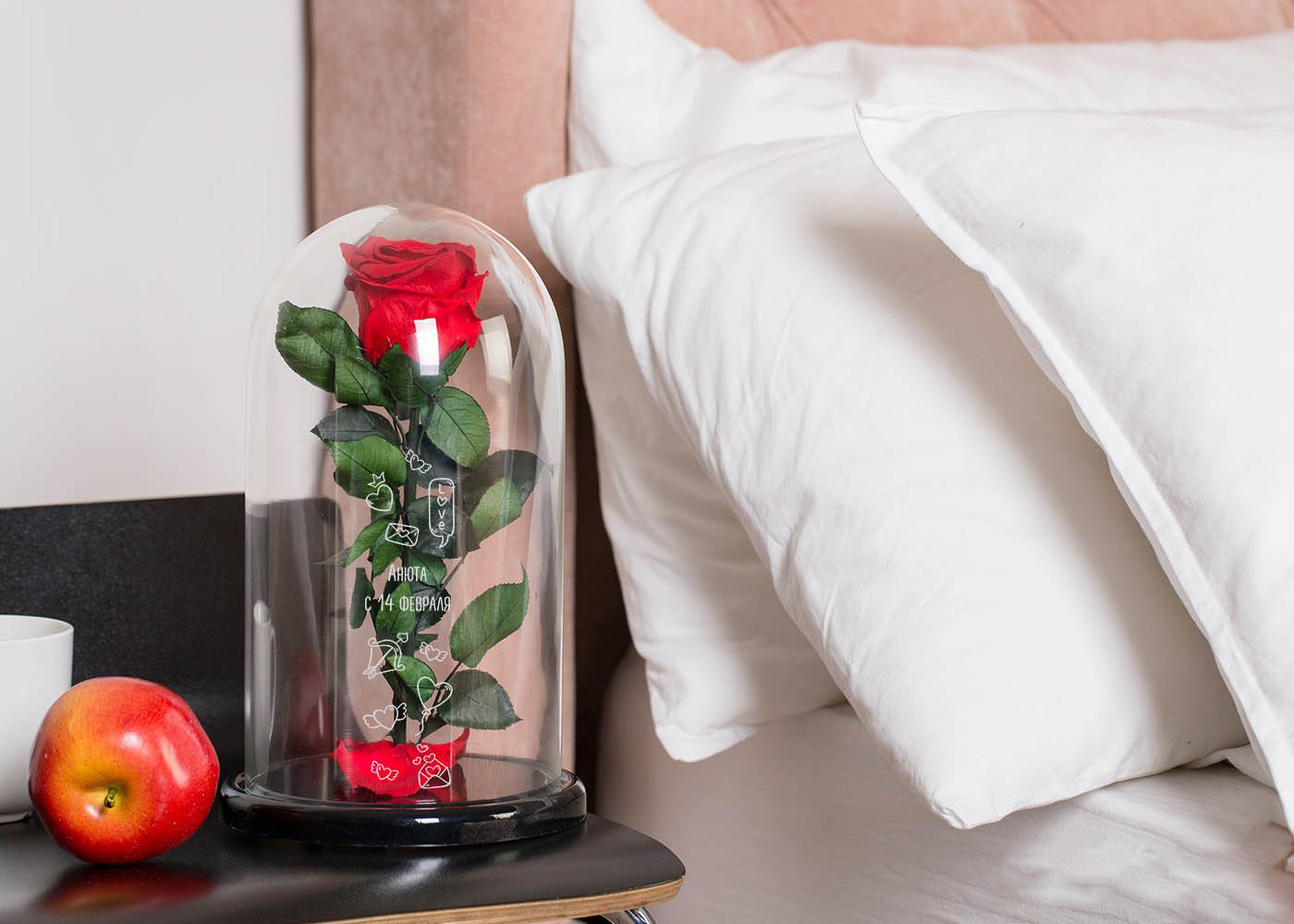 At your request, masters will be able to engrave declarations of love, a quote from a favorite song or your names on a glass base.