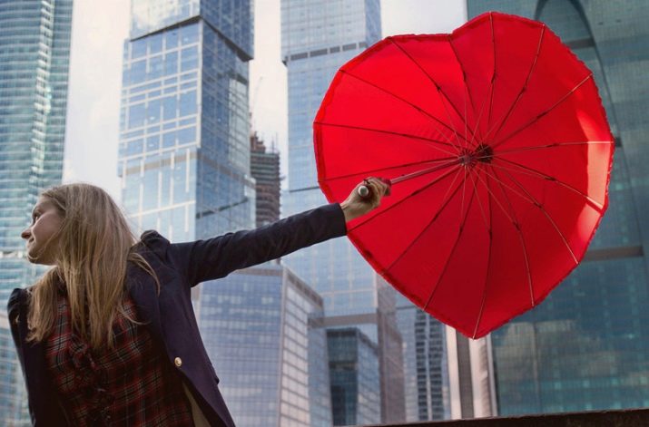 - You can give your favorite umbrella. This is a very useful device that should be in the arsenal of each person. However, the usual umbrella model is too simple and a trivial solution. On Valentine's Day, the girl is better to give the original product, the top of which is made in the form of a large bright red heart.