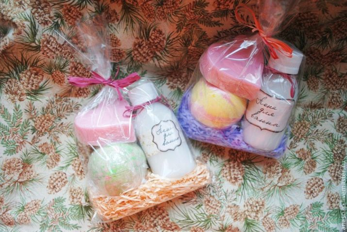 - A good solution is a bath set. You can purchase a ready-made kit, consisting of fragrant soaps, oils and scrubs. And you can make your own set, using salt, foam bath (suitable foam in the form of bombs). Packaging self-assembled sets should be in beautiful gift packaging.