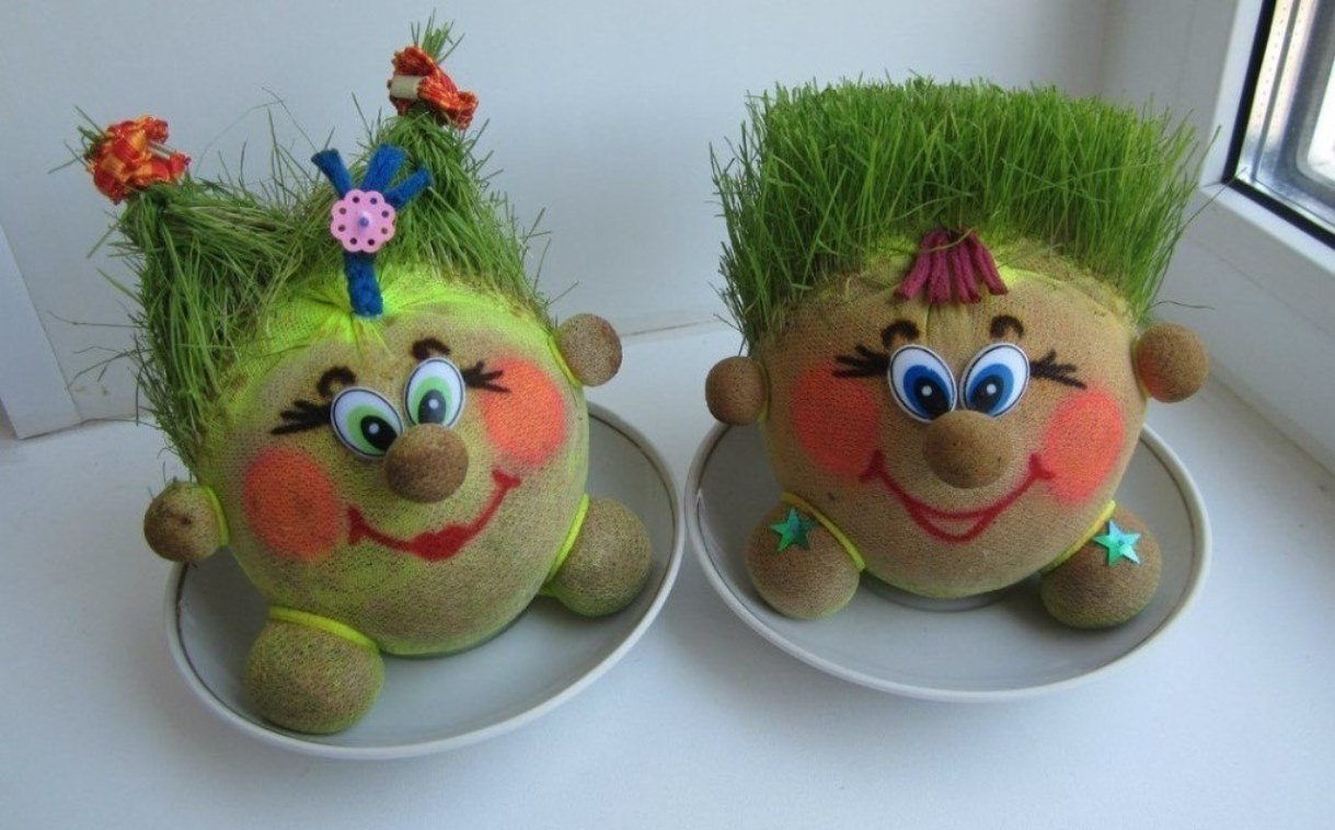 It is usually very interesting for children to observe the development of the grass, to look after them, to learn from adults how this process is carried out. This gift is also good because you can choose different figures - in the form of fairy-tale characters, animals or objects. Thus, gifts will be both the same and individual.