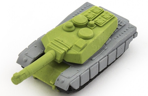 By the way, it can be supplemented with items just with a military theme - a ruler, covered with a characteristic print, an eraser in the form of a tank or a sheet of stickers.
