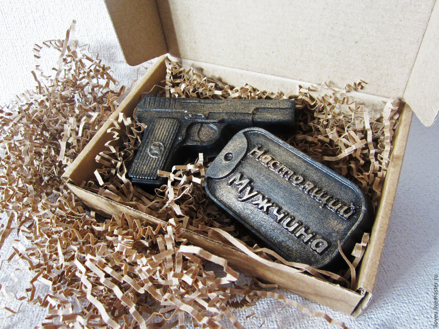 Handmade soap in the form of a tank or a grenade. In the store you can buy kits for self-manufacturing soap.