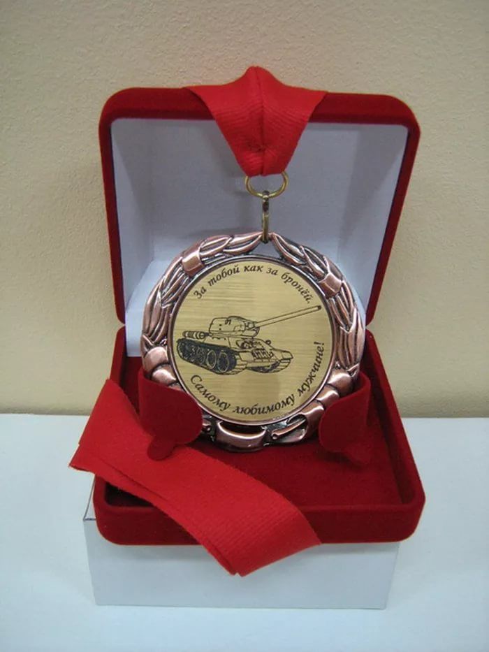 Badge or order: "Good husband", "Best in the world." Remind merit your beloved can, giving the appropriate medal. If you choose a sincere message, the guy will be very pleased.