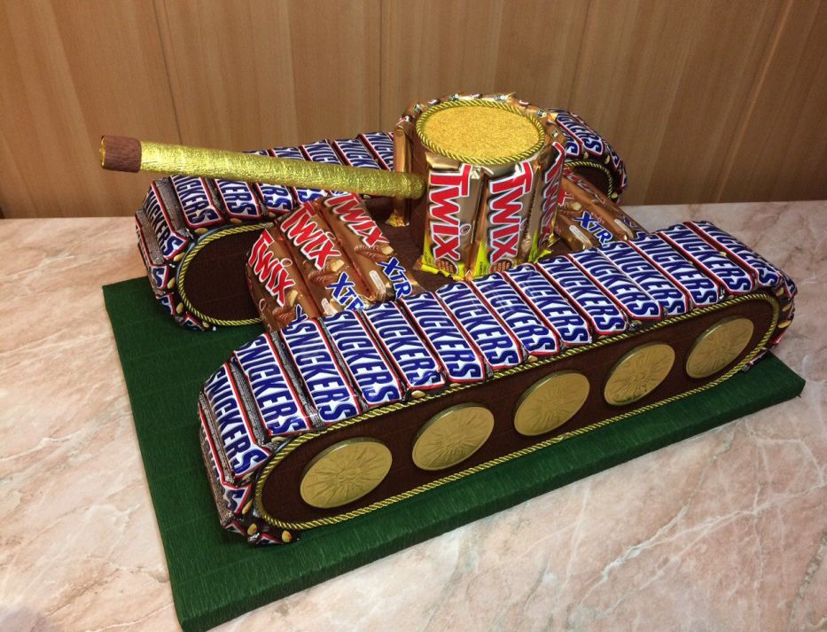 - Chocolate weapon. Another themed gift. It looks like a real instrument and will appeal to all sweets. However, it is important to clarify with the boy’s parents if the child has contraindications for using this product.