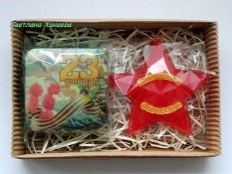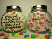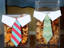 On February 23, you can give the guy a delicious edible gift. The relevance of such surprises has not disappeared for many years. A gift of this kind can be sweet. To do this, it is permissible to fill in a separate beautiful jar with delicious sweets or sweet peas, and then arrange such a gift as an improvised “bottle of happiness”.