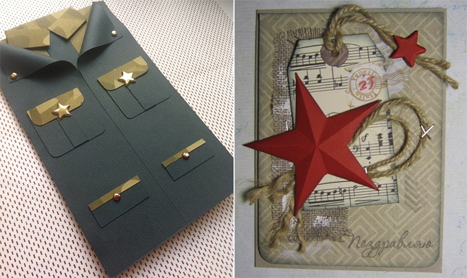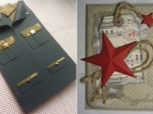- Very unusual and attractive gift can be formed from paper, following a technique called scrapbooking. This is a special kind of handmade art that is most often applied to family albums. Scrapbooking involves posting on the basis of various photographs, newspaper clippings and records. On February 23, you can make a stylized composition with red stars, a flag and other similar details.