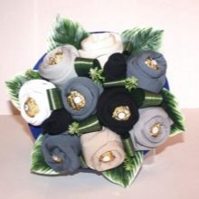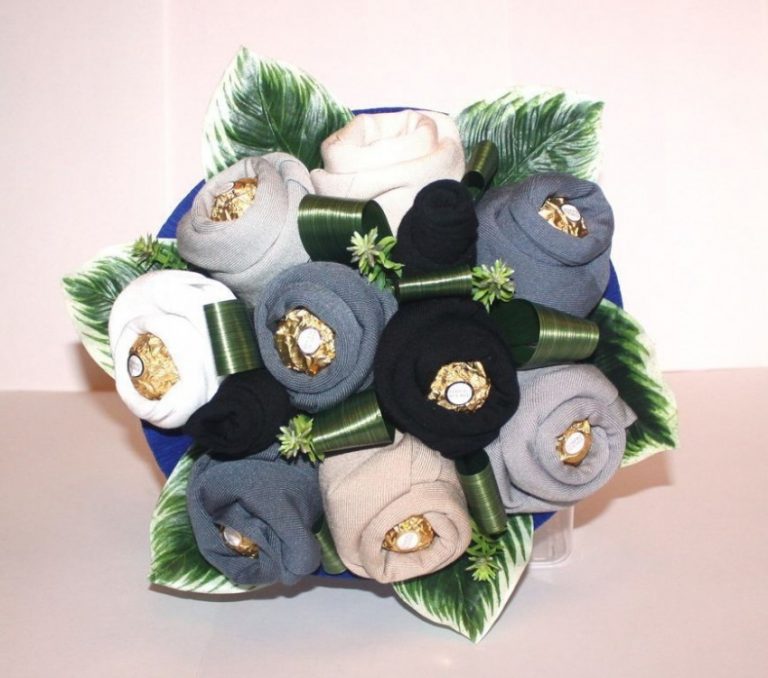 You can make an original gift of socks. It should be done like this. To make a bouquet more vivid and original, it is desirable to stock up on socks of different colors. If your man prefers only dark gray or black socks, then they can be diluted with instances painted in light gray color, adding to the "bouquet" on top.