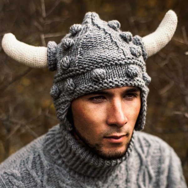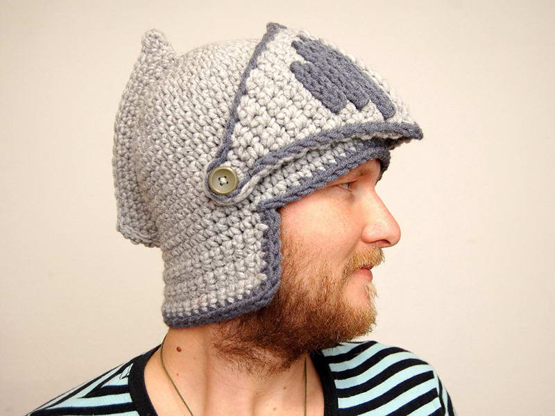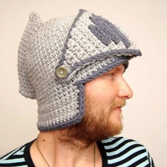 Another interesting idea for a knitted gift is a hat made of yarn. In this case, the knight's helmet is meant. Such a thing will be a very original and funny gift. It is recommended to give it to young guys with a good sense of humor. Often, these accessories knit for boys.