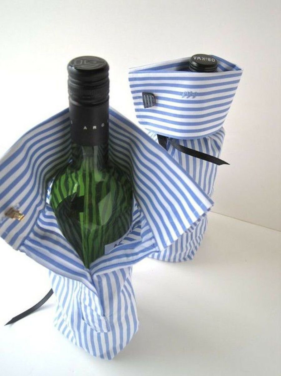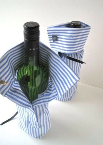 - Bottles with alcoholic beverages You can make a striped fabric, the shape of which is similar to the sleeves.