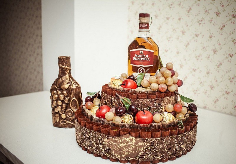 - with a cloth, it will be nice to arrange bottles with alcoholic drinks, handed as a gift.
