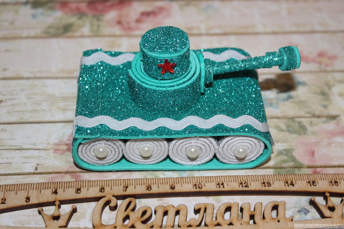 You can make a lot of interesting and beautiful handicrafts from foamiran, which will not be a shame to give to a man or a guy on February 23. Let us consider in detail how you can create a nice tank from this raw material.