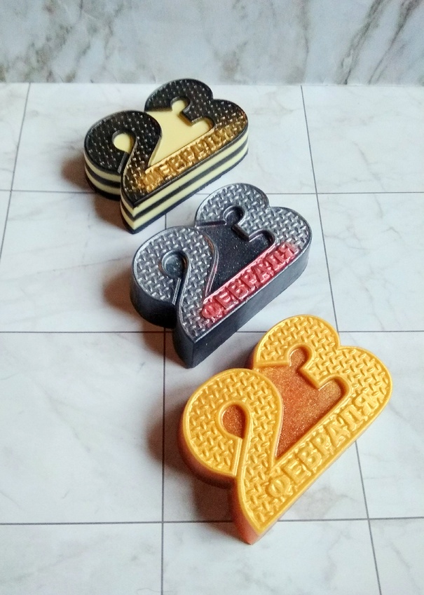 On February 23, you can hand a man his own soap. It is made in several ways. In each case, it is necessary to strictly observe the recipe and all stages of preparation. On such a holiday is to pick the appropriate molds. The following options are appropriate: