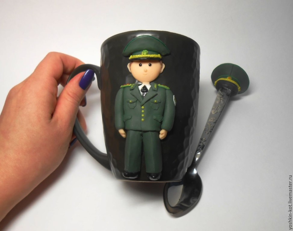 Polymer clay can be made a great variety of various handicrafts to give them to a man or a guy on February 23. From this material are very beautiful statues, magnets, key rings and other trifles. You can work with this raw material at home.
