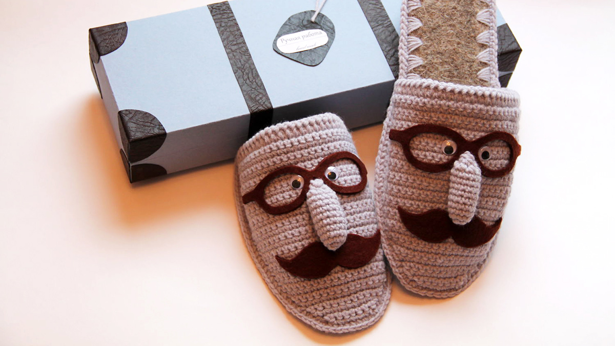 If you want to give a man a more original and bright knitted gift, then you can take up making tapko-tanks. Such things are so called because they are slippers shaped like miniature tanks. They can be made from high-quality knitting yarn or other varieties. It is not too easy to knit such slippers, but in the end you can get a really unusual and creative gift that a man will definitely be happy about.