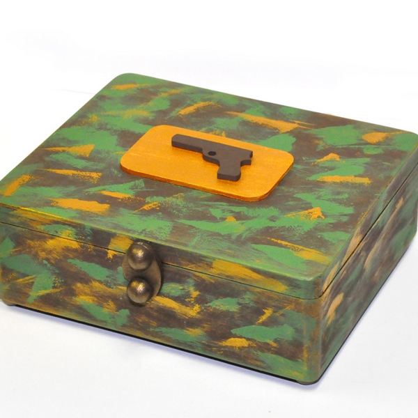 - Very interesting topical solution - wooden box, tidied and painted in military style.