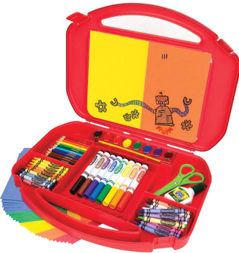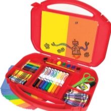 - big set colored pencils, felt-tip pens, wax crayons in one package.