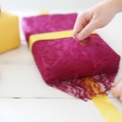 - You can wrap the gift in the fabric. But in this case, think about what details to decorate the packaging. It can be decorative inexpensive brooches in the form of bugs, butterflies, treble clefs, large safety pins, etc.