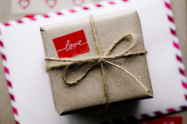 - Put a gift in the box and cover it with a rough postal paper (parcels and parcels in the mail were wrapped in this before). Use hemp or twine for the waist. Do not forget to attach a delicate and sophisticated artificial flower to the rough package, reminiscent of spring, or an old metal key from the cabinet - you’ll get a very vintage stylish presentation. You can add the image of the “parcel” and write from whom, where, to whom it is intended: “Beloved”, “Native mummy”, “Better sister”, “Cute daughter”.