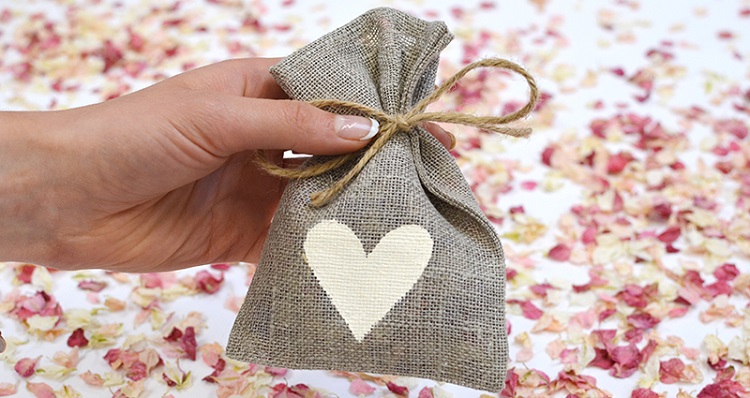 - Fill a linen bag with sliced multicolored confetti. (if there is no time to chop, gut the baby cracker). In confetti, a small gift is perfectly hidden, for example, a box with jewelry. The bottom line is that the lady, to get to the gift, will have to scoop all the confetti first.