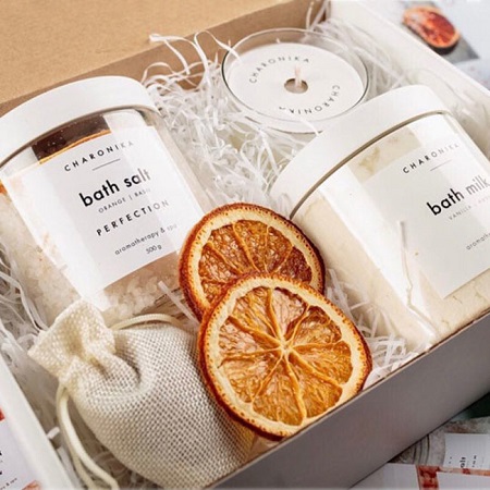 - SPA home set - A great surprise that will appeal to a lady of any age. It includes mittens and gloves for procedures, as well as essential natural oils, cosmetics, natural scrubs, scented candles.