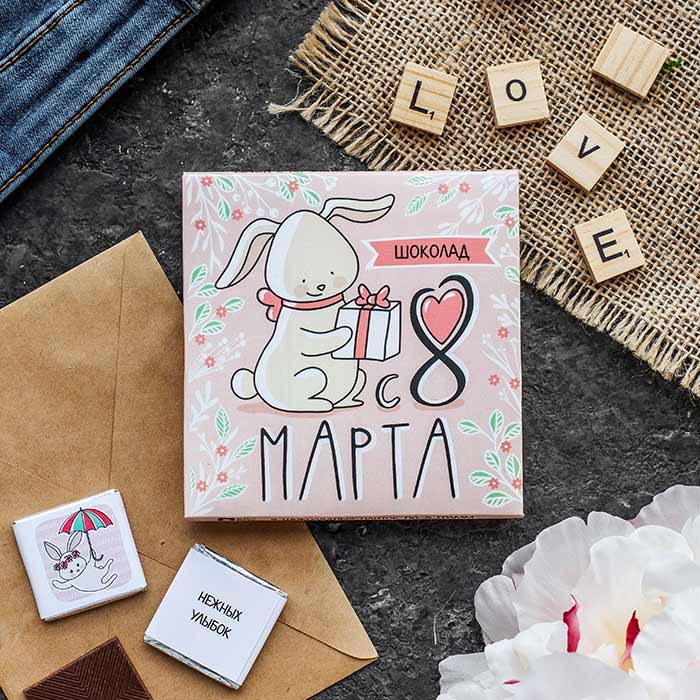 - Sweet gifts - It also depends on the preferences of your ladies. Some people love chocolate, while others like marmalade. Any festively packed sweets are appropriate on this day; an excellent option is a box of oriental delicacies, handmade chocolates, mini-marshmallows in a beautiful basket, personalized chocolate sets with individual wishes on each candy, chocolate figures. Shopping chocolates - not the best option for loved ones, because they are too on duty look.