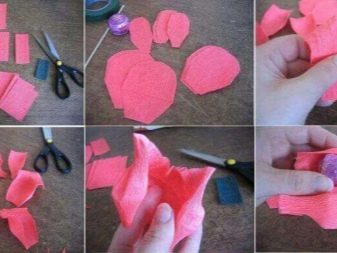 Therefore, we analyze how to make different types of flowers for the card. At your request, you can stick a bouquet of identical buds or use different flowers in the composition.