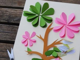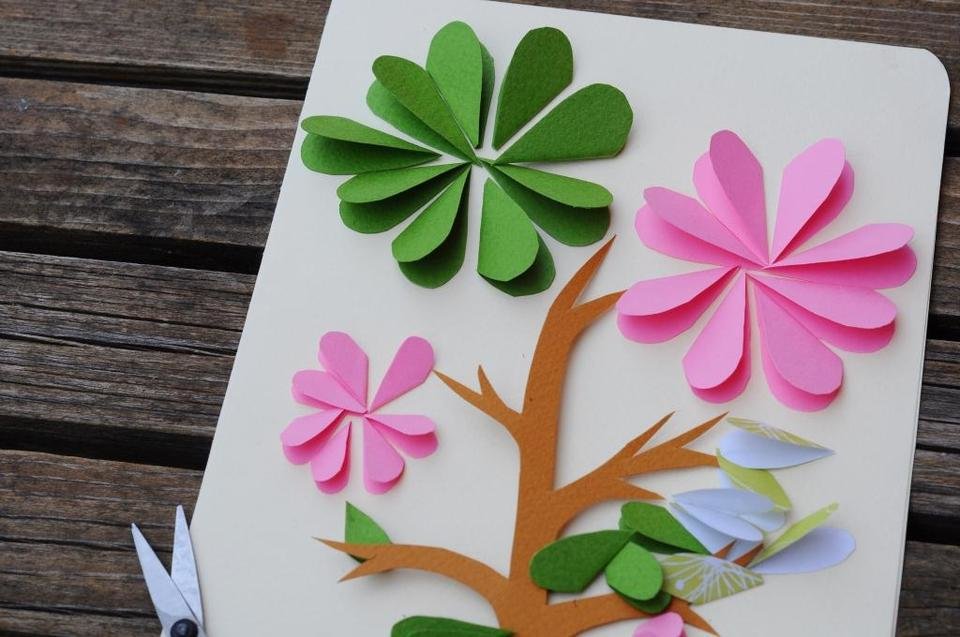 The most common decoration for postcards on March 8 are flowers. There are many ways to make them from colored paper. The main idea is to make a cardboard blank on the card itself and decorate its outer side with such flowers. Inside, the most sincere wishes can be located.