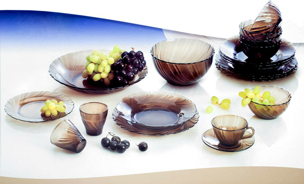 Especially if the plates, saucers and mugs are made in the same style. Today it is most often sets of tinted glass.