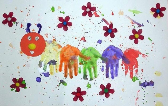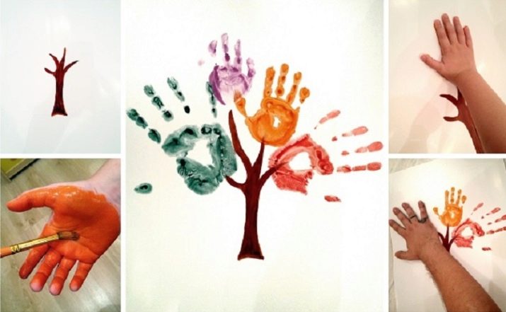Next, you should collect all family members and engage in joint work. Decorate the palm of each of the participants in different colors and make prints on the future picture. The originality of this gift lies in the fact that the mother will have to guess where the prints of her beloved daughter, and where the son-in-law or grandson.