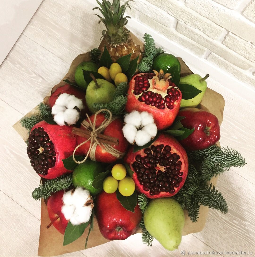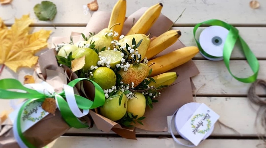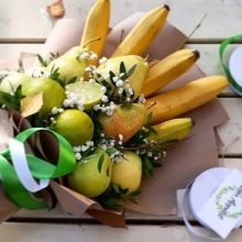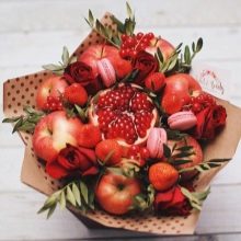 The composition can be created from any exotic or traditional fruit. Such a gift is definitely not lost. Fruits are freshness, lightness, femininity, vitamins that are especially needed in the spring. By the way, this is a very affordable gift. Often it is customary to give “presents” not only to caregivers, but also to a nurse, a music worker and other employees working with the group, and if each of them is handed over a fruit bouquet, then the carers will be satisfied and the parents will quite pull such a gift financially.