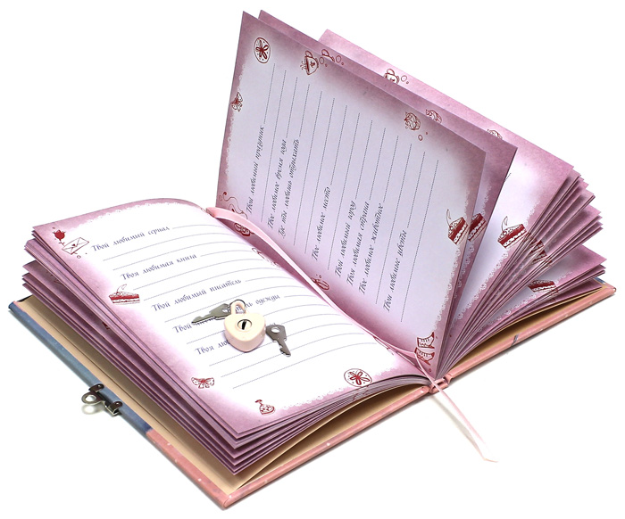 - Diary on the lock for reliable storage of girlish secrets.
