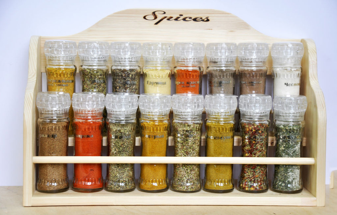 - a set of unusual spices - garam masala, juniper, cardamom, saffron, lemon grass, star anise, garlic, bear garlic, soumas, fenugreek, vanilla in sticks, dried tomatoes, cumin;
