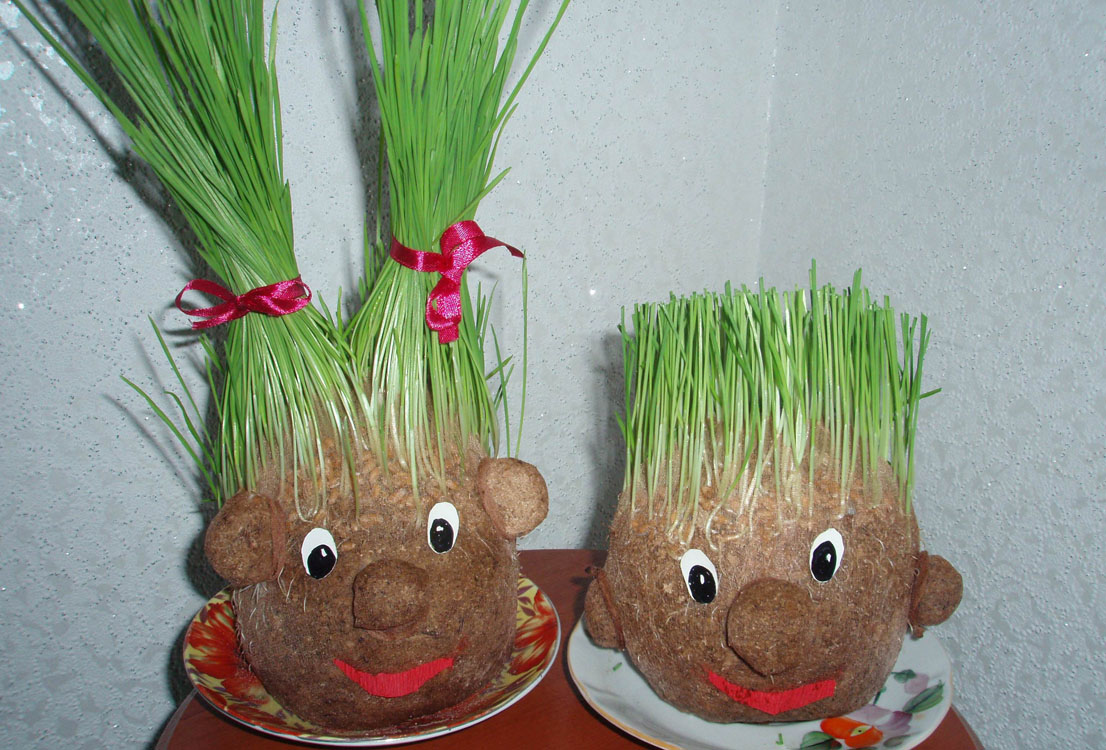 These herbal heads can be personalized to make them look like family members.