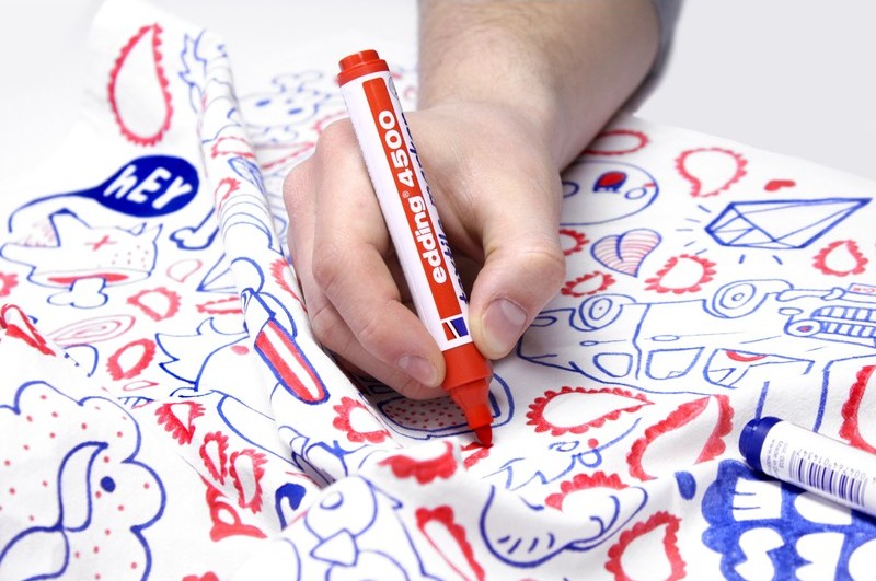 Moreover, sets of textile markers are available: shades of blue and green, red or other colors. When the drawing is ready, you need to stroke the fabric. This makes it safe to wash it at temperatures up to 60 degrees.