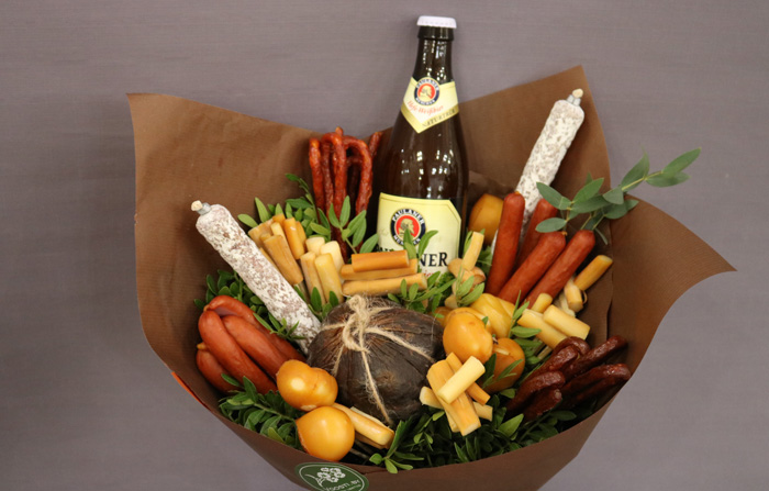 - Edible Gifts. Chocolate sets in luxurious chocolates, men's edible bouquets, gift sets of cheese and wine.