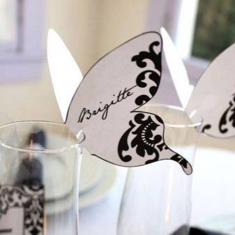 Carefully embroidered napkins with initials or tags on glasses, made using the scrapbooking technique, will be a nice addition to the holiday and will give a good mood to the guests. You can make arrows with pointers with the name of the guest or several at once, which will point the way to a place at the table.