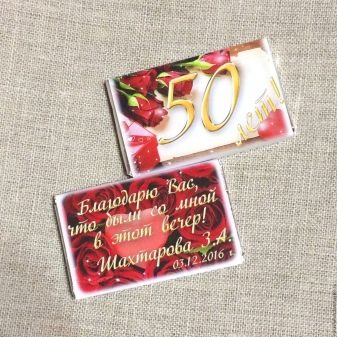 Of course, the preparation of the anniversary is a serious matter, and it is worthwhile to think over everything in advance. Hand-made paper or fabric flowers look original - then the guest will be able to take his flower home. On the backs of the chairs you can wear T-shirts with names or funny inscriptions and pictures printed on them. Each guest can also take it with them as a souvenir and then wear it. And you can sew mini-covers on the backs of chairs in the form of a tuxedo, where men sit, and dresses, where women sit.