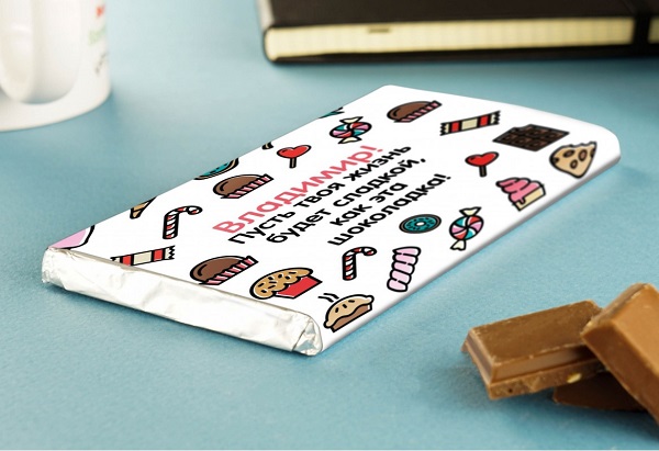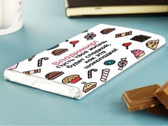 In addition to the usual sets of chocolates and chocolates, you can order personalized candy, chocolates with wishes, candy with predictions on candy wrappers.