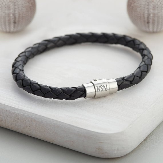 - stylish men's bracelet - leather, metal;