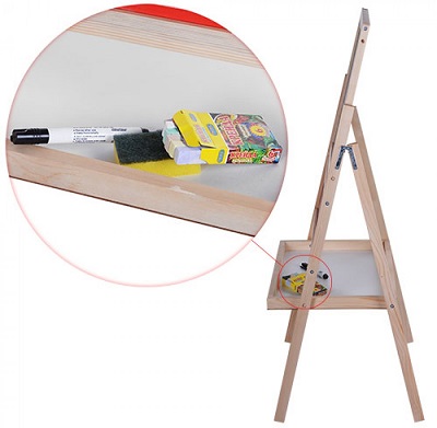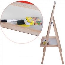 - Two-sided easel, to which is attached a set of crayons and magnetic letters and numbers, which allow in game form to teach the boy alphabet and counting.