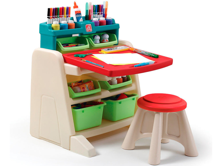- If parents are unable for material reasons to buy the child everything they need, grandparents can contribute to this. At the age of 4, the boy needs to have his own workplace, where he can draw, play and just spend time in his own world. To do this, purchase specialized desk, which has correctly chosen dimensions taking into account the growth of the child and convenient compartments for useful trifles. Often, these desks have bright colors or are even created with the heroes of their favorite cartoons, so that the child is more interesting to be behind them.