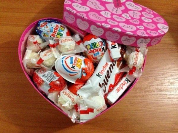 Another interesting idea for a birthday gift for little boys is a beautifully decorated set of sweets made from chocolate Kinder surprises or other small chocolates loved by children. Sweets can be placed in an interesting and bright cardboard box or wicker basket.