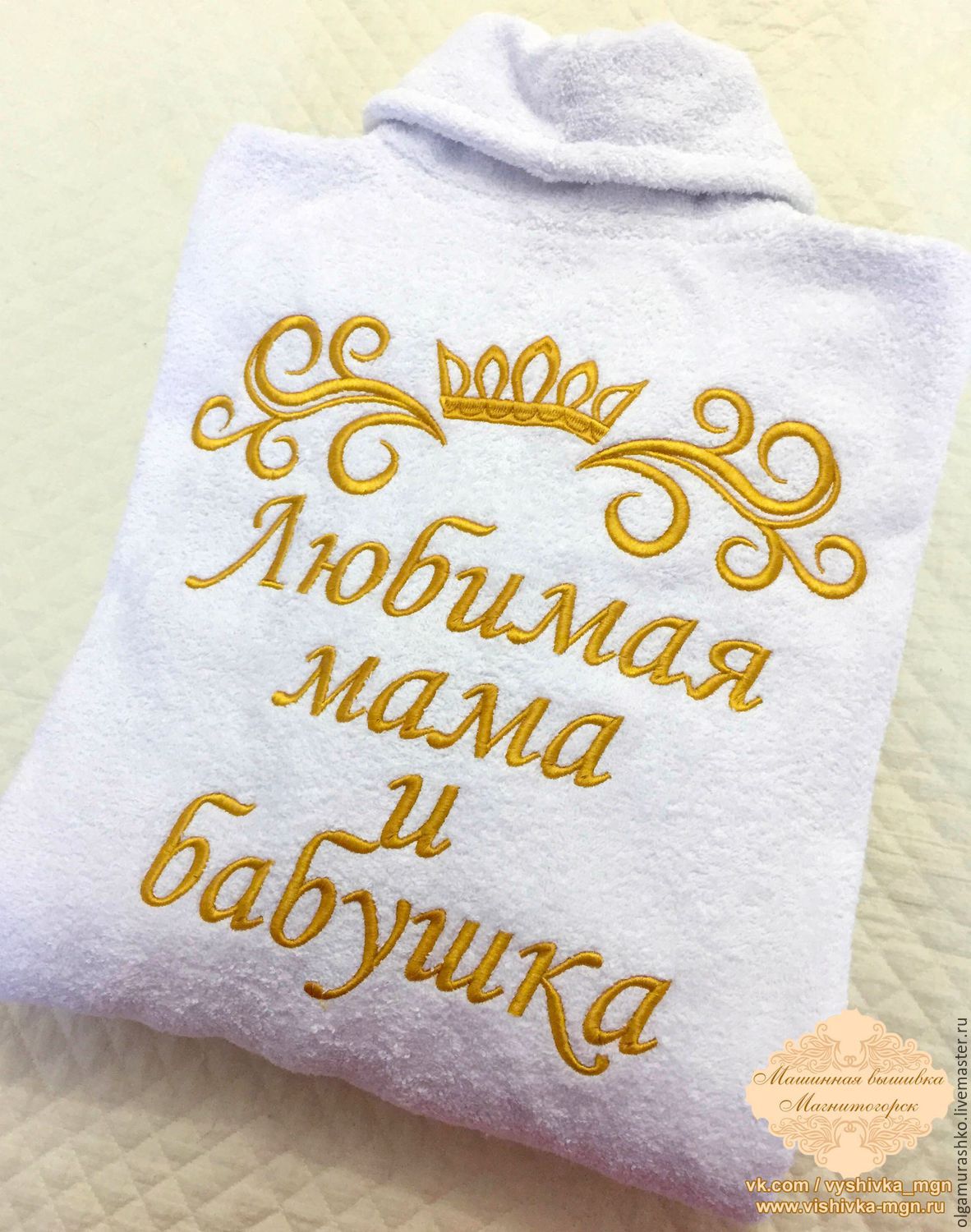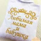 - The product with the name embroidery. A cozy bathrobe - a good gift. And if you write on it the name of the hero of the day, the phrase “beloved mommy” or other pleasant words, the gift will be doubly enjoyable.